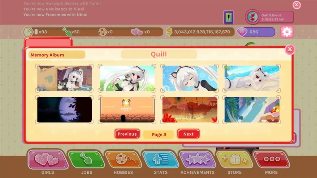 * Money (From Jobs): Used to buy gifts, which are the primary way to increase a girl’s affection hearts. Always have an income stream running.