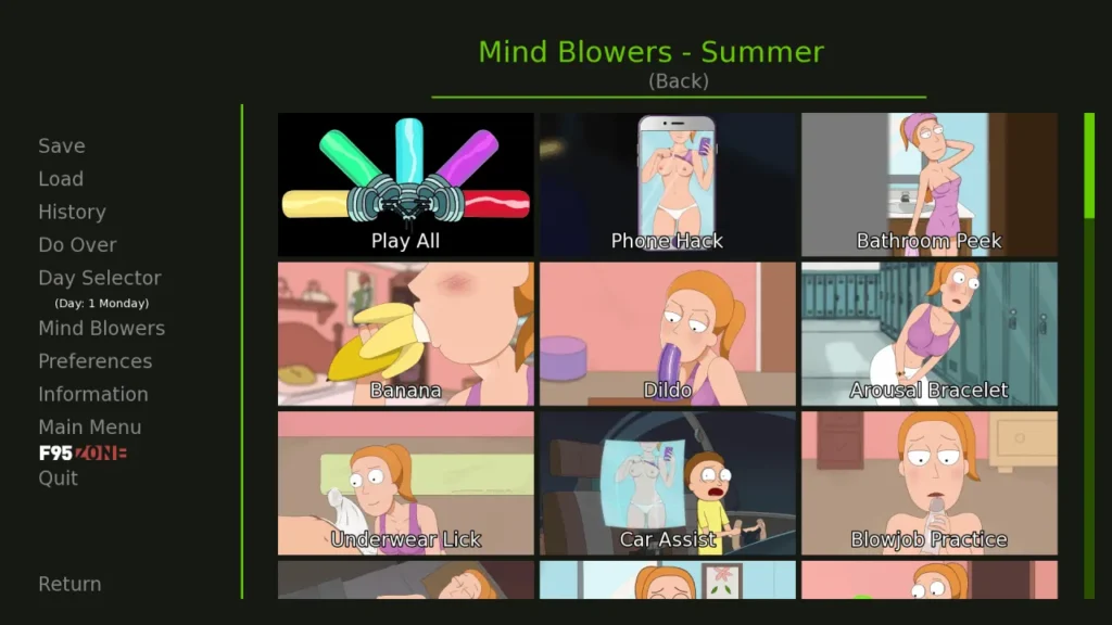 Then there are the Rick Morty NSFW game features. Let’s be clear: this is an adult visual novel Rick Morty. The game parodies the show’s occasional risqué moments and takes them further, integrating them into the story and character relationships. These aren’t just random scenes; they’re often tied to your choices and how you navigate Morty’s relationships in these weird realities. They fit the edgy, nothing-is-sacred spirit of the source material.